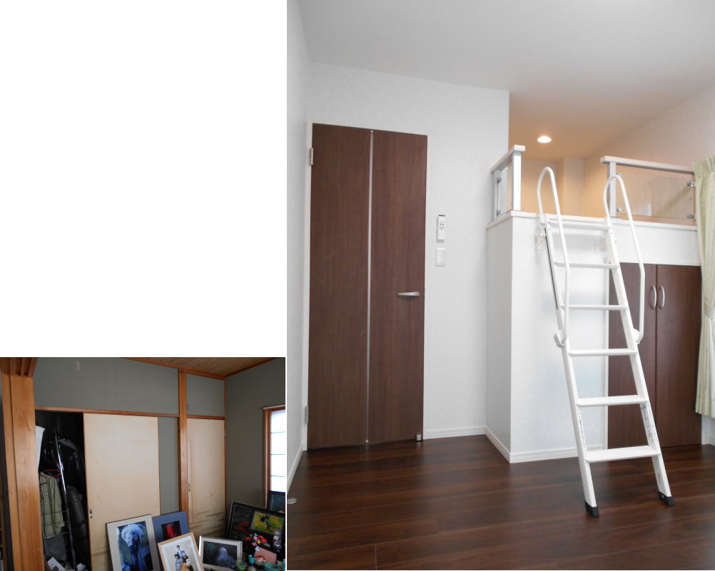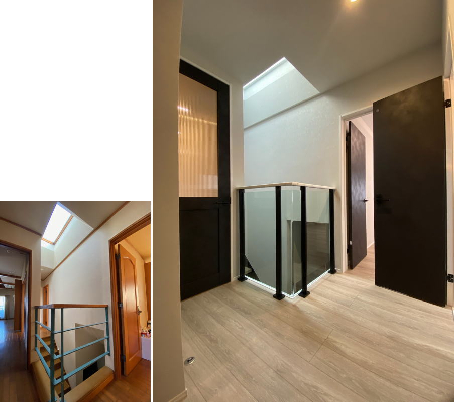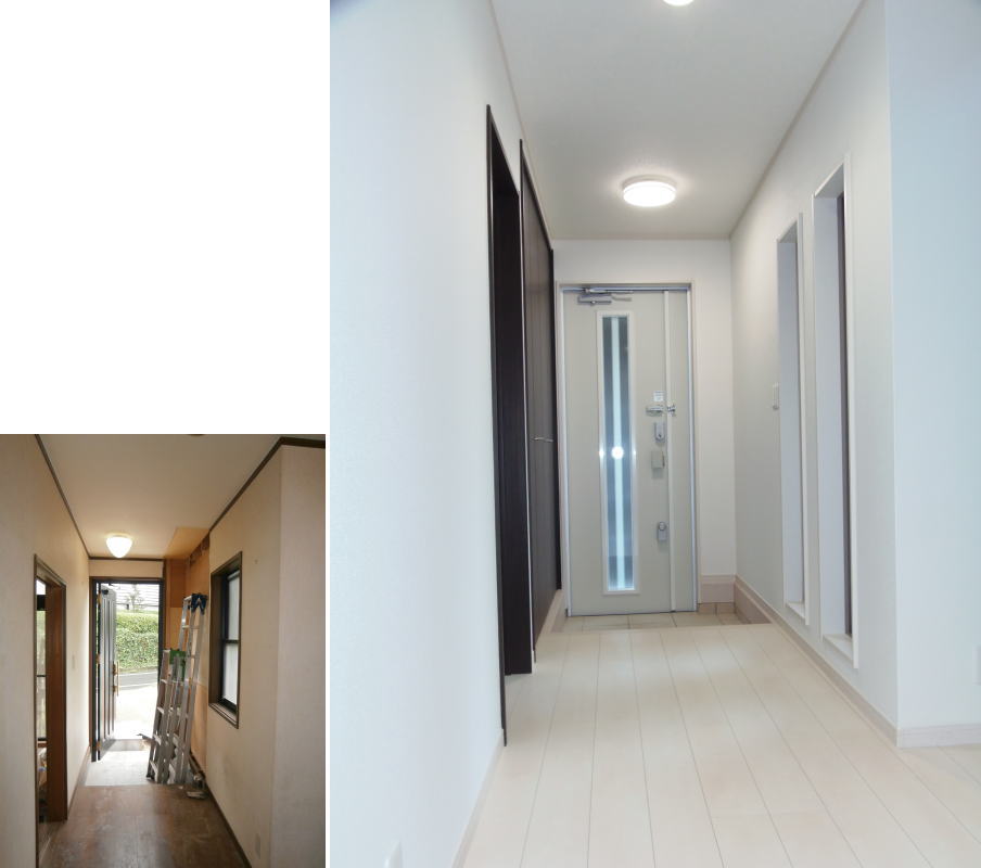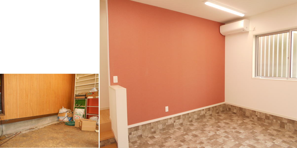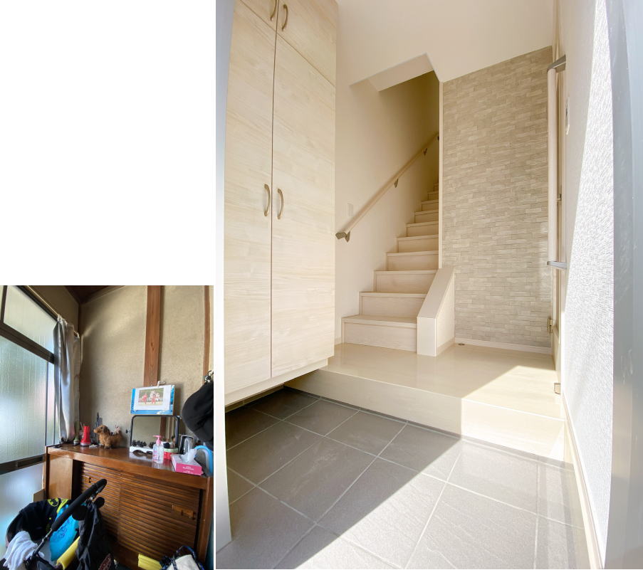 以前は店舗への入口だったところを、間口を広げてリビングへの入口に変身しました。