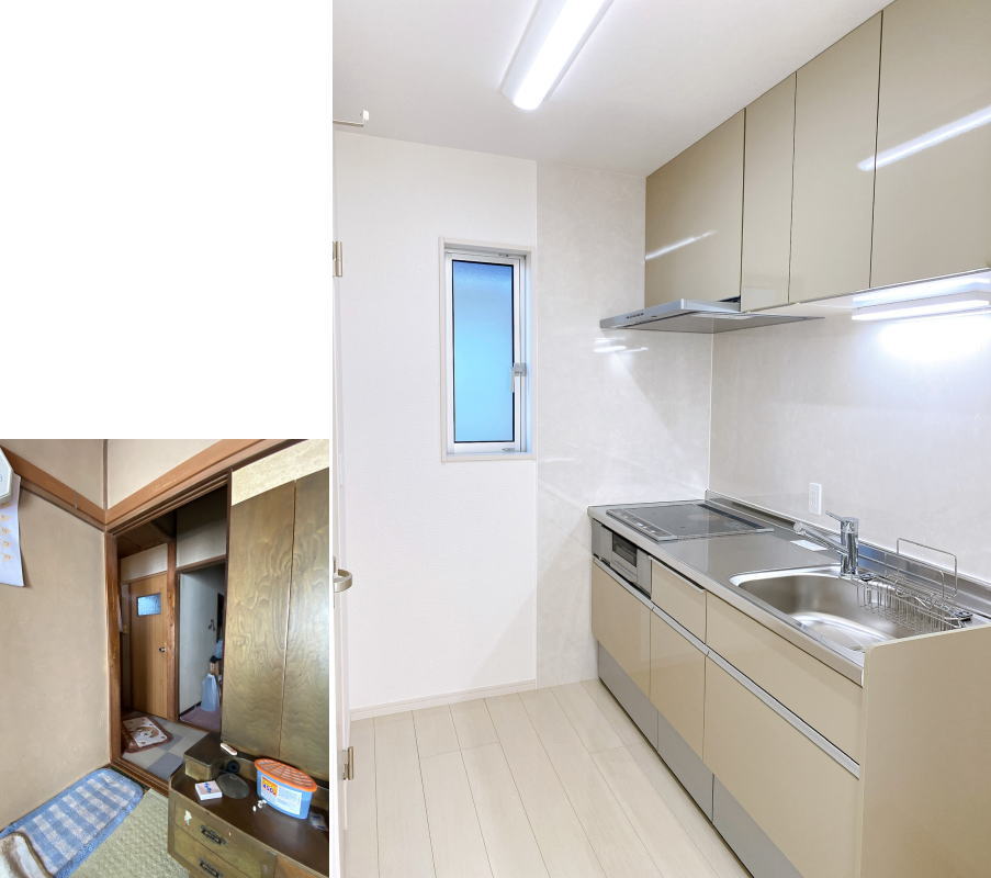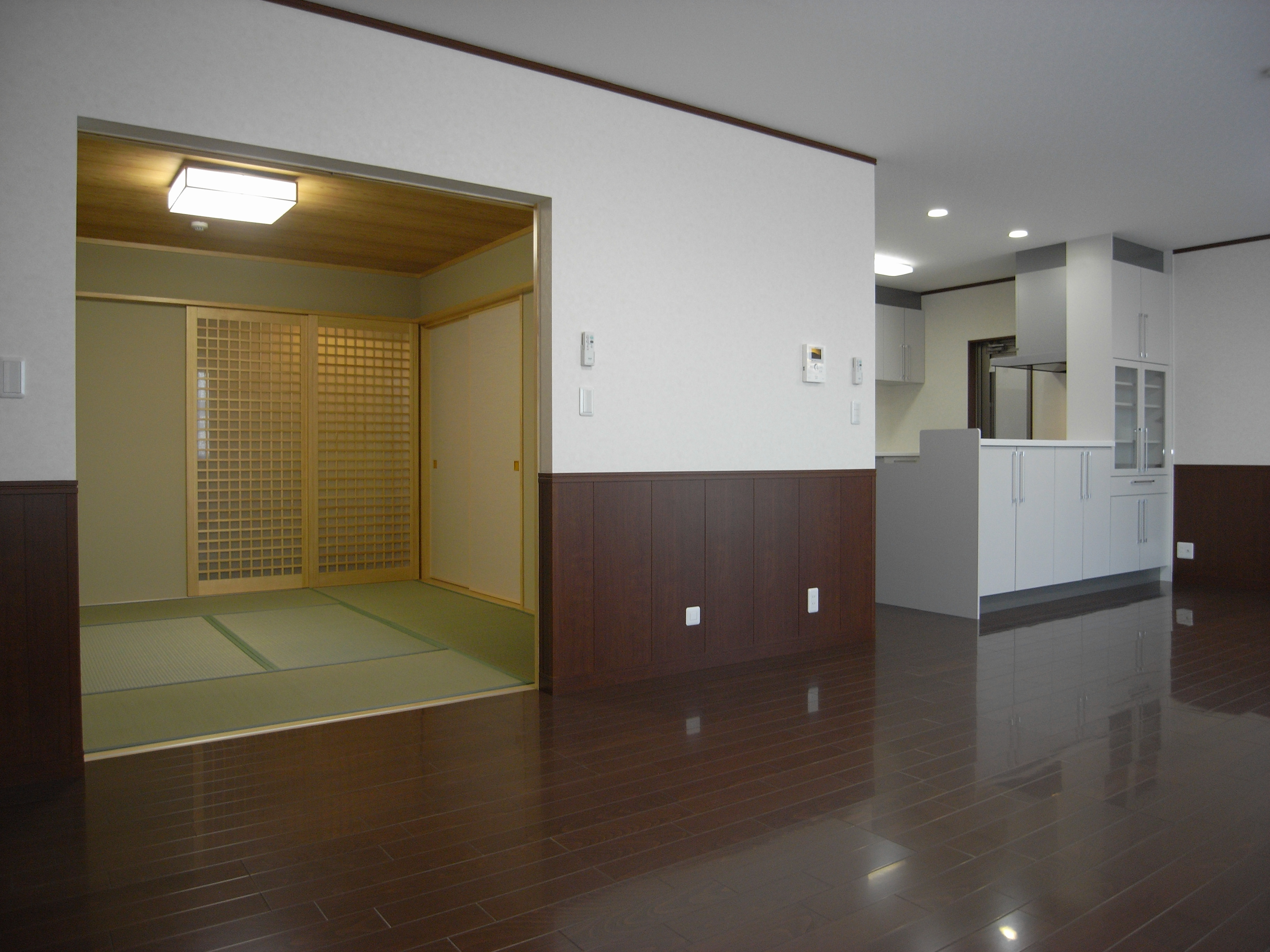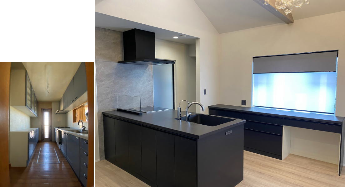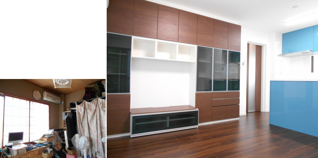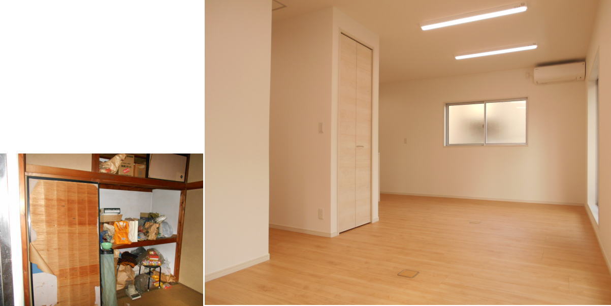 以前は店舗への入口だったところを、間口を広げてリビングへの入口に変身しました。