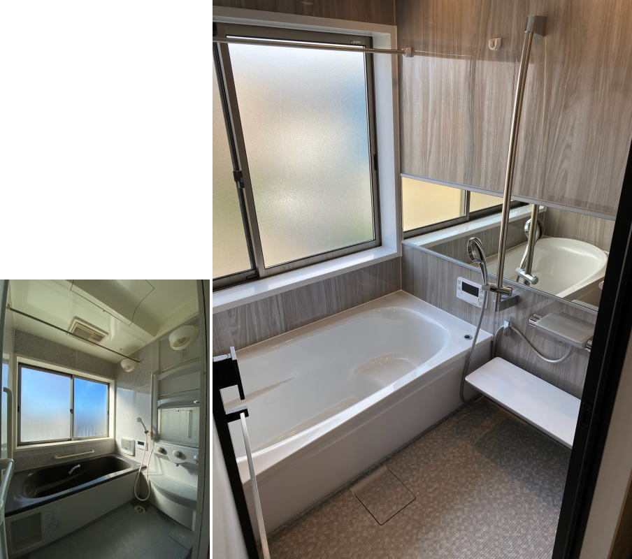 1616タイプのシステムバス。浴室暖房乾燥機付、床ワイパー洗浄機能付きです。
