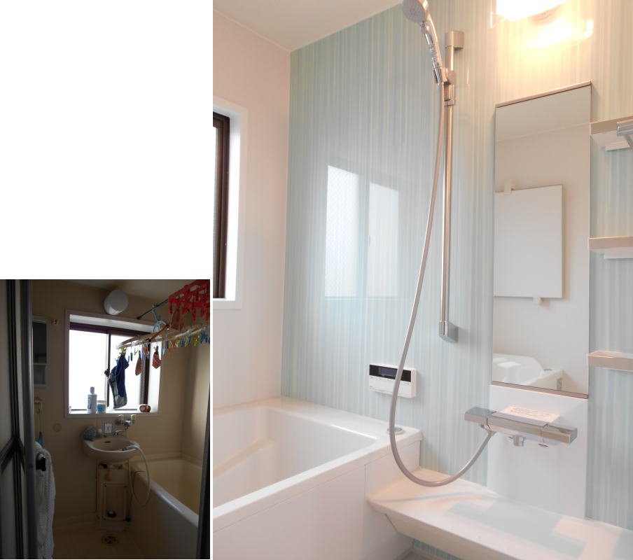 1620サイズのシステムバス。お手入れが大変な床・浴槽はボタンひとつで自動洗浄。