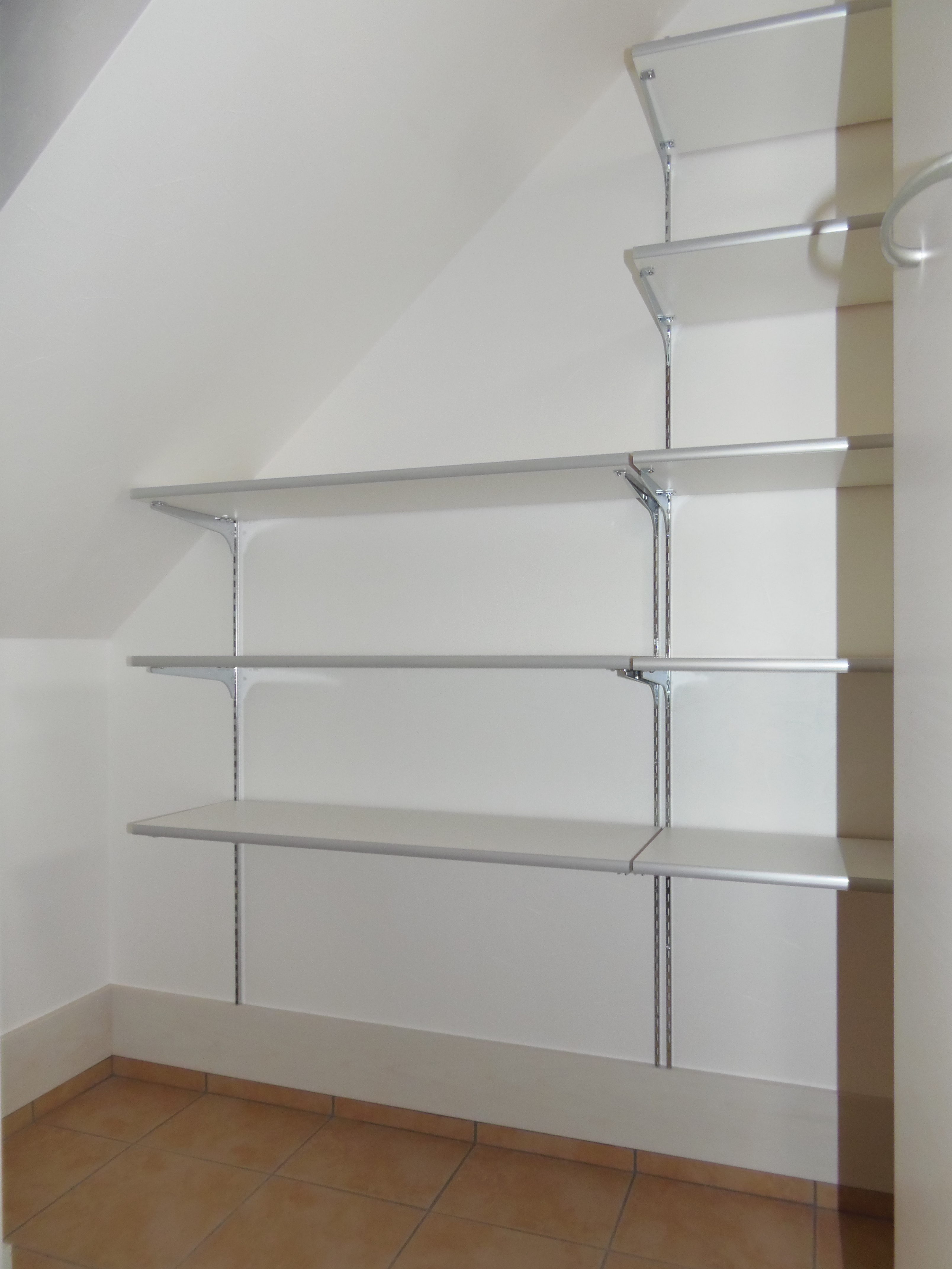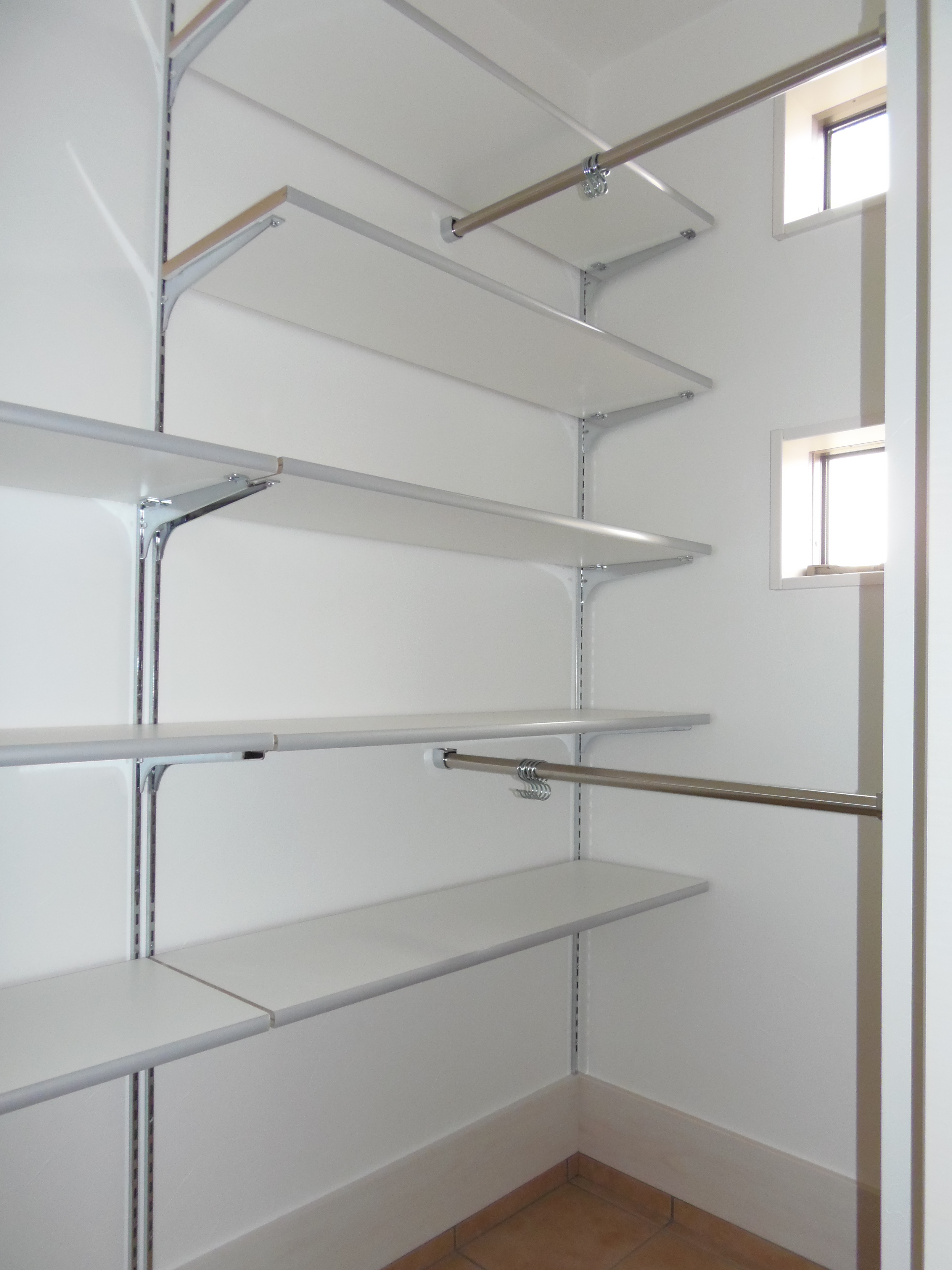 L型の可動棚、物干し掛け、換気扇等を設けました。