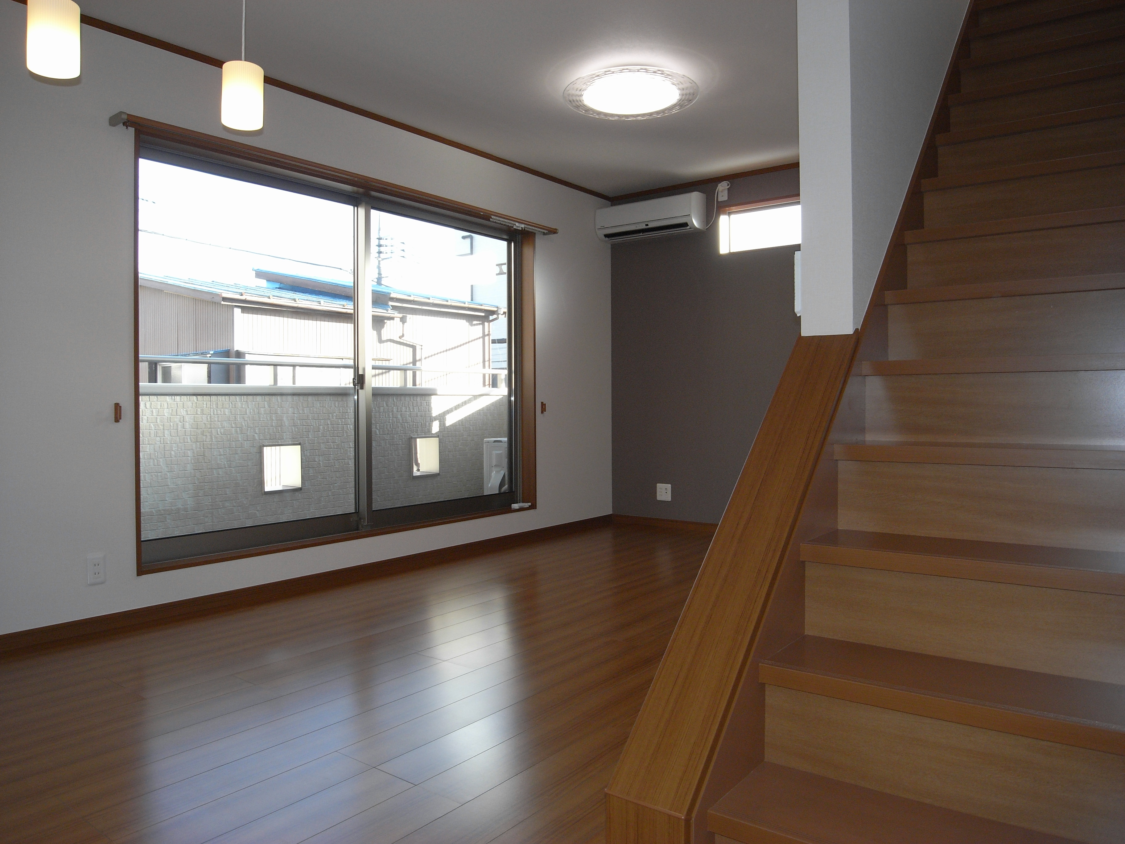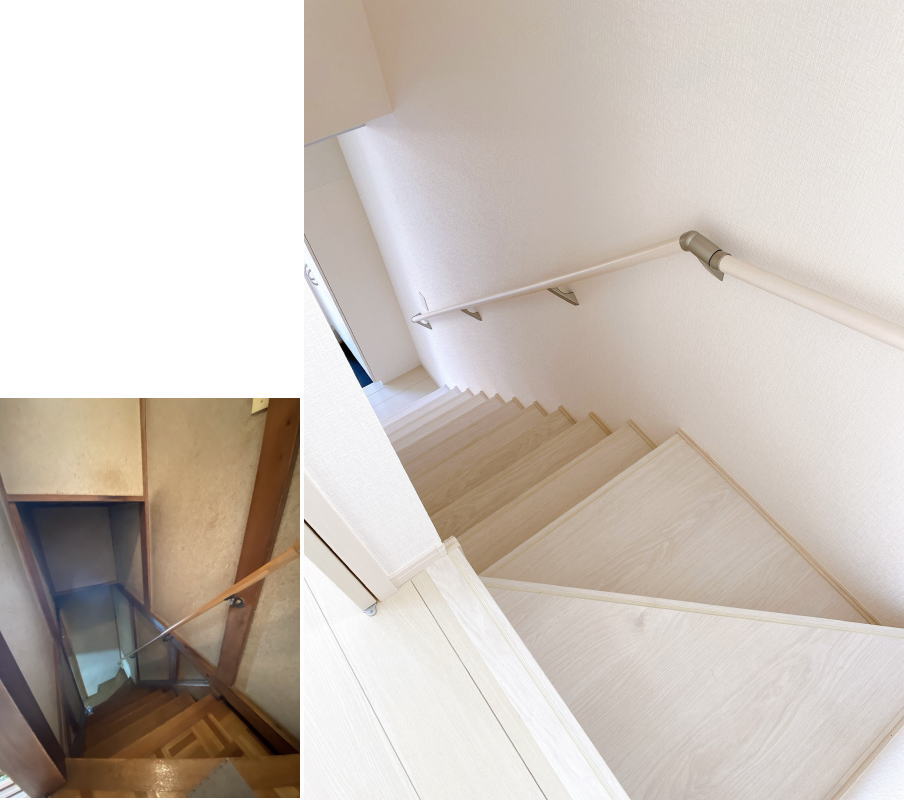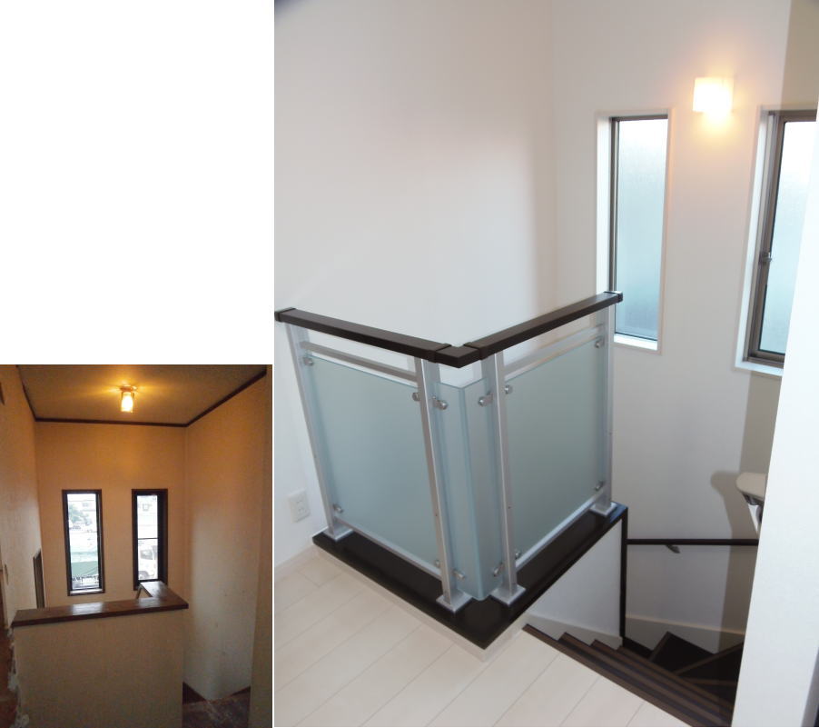 カウンターを設けて、ちょっとしたものを置けるようにしました。もちろん手摺りもつけました。